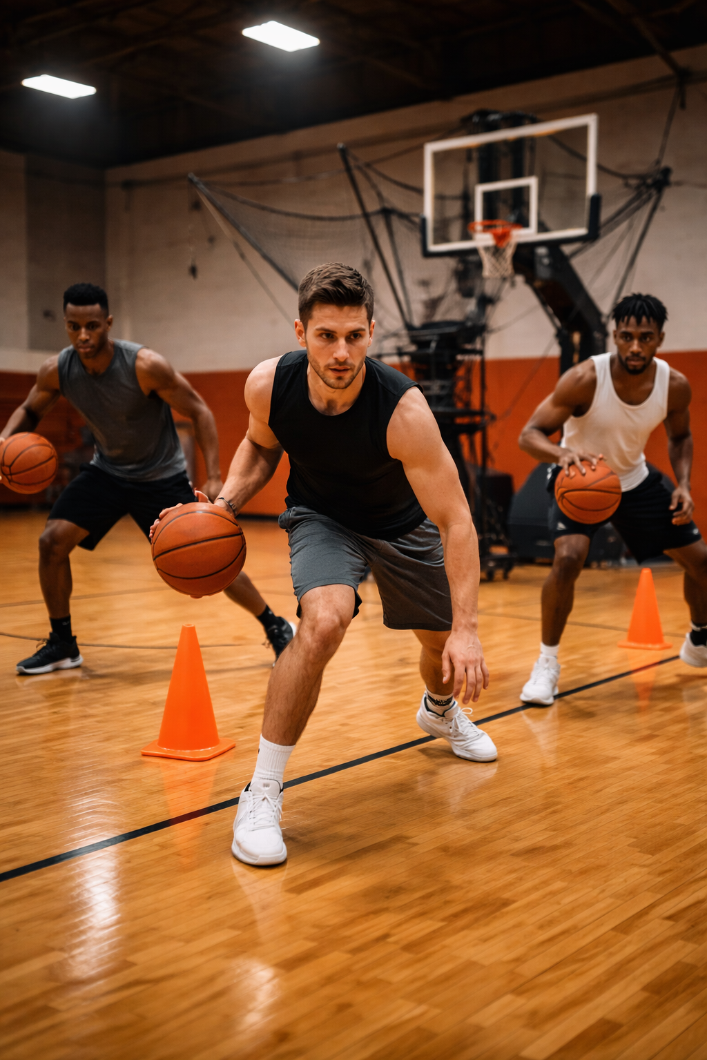 Our Small Group Workouts provide a high-energy training environment that combines repetition, competition, and skill development. Sessions are conducted using either our mini court or multiple shooting positions, allowing athletes to rotate through drills efficiently.